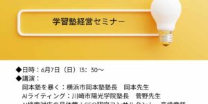 主催者:高嶋竜慈より 2名の登壇者の話は、従来型の「地域密着型塾」を脱した経営スタイルです。 少子化に伴い、現在の…